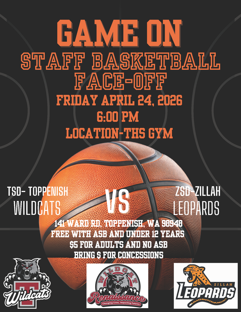 Join us for a Staff Basketball Face-Off as the TSD Toppenish Wildcats take on the Zillah Leopards!📅Friday, April 24, 2026⌚️6:00 PM📍Toppenish High School GymCome out and cheer on our staff for a fun...