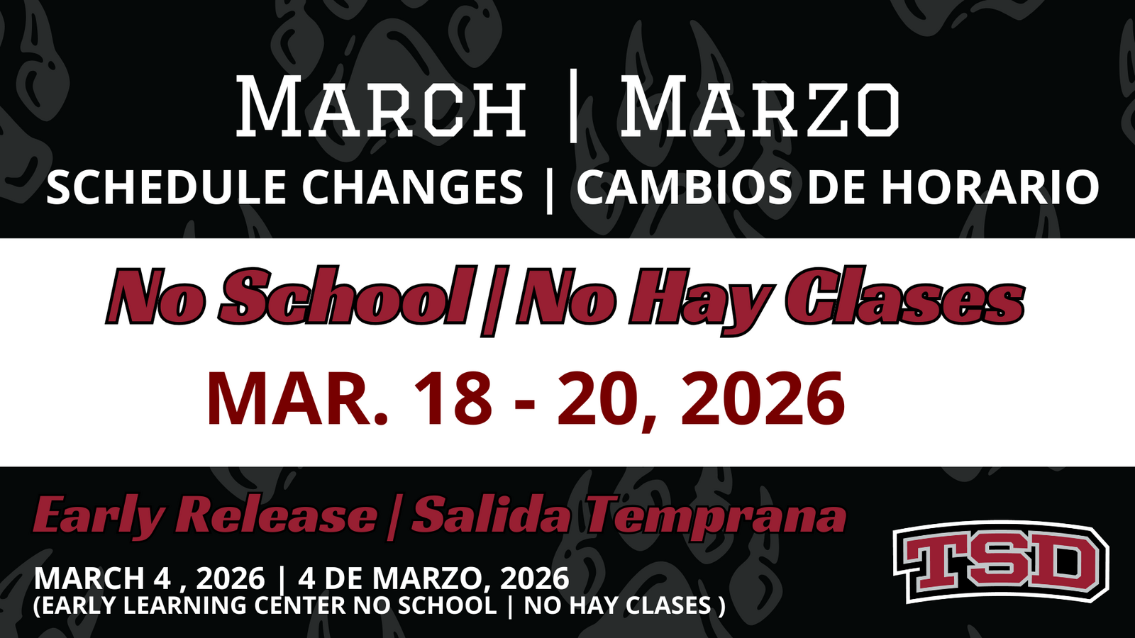 As we start a new month, we want to make sure families are aware of a few upcoming schedule changes in March.Please plan accordingly for the following dates:• Wednesday, March 4 – Early Release (Ea...